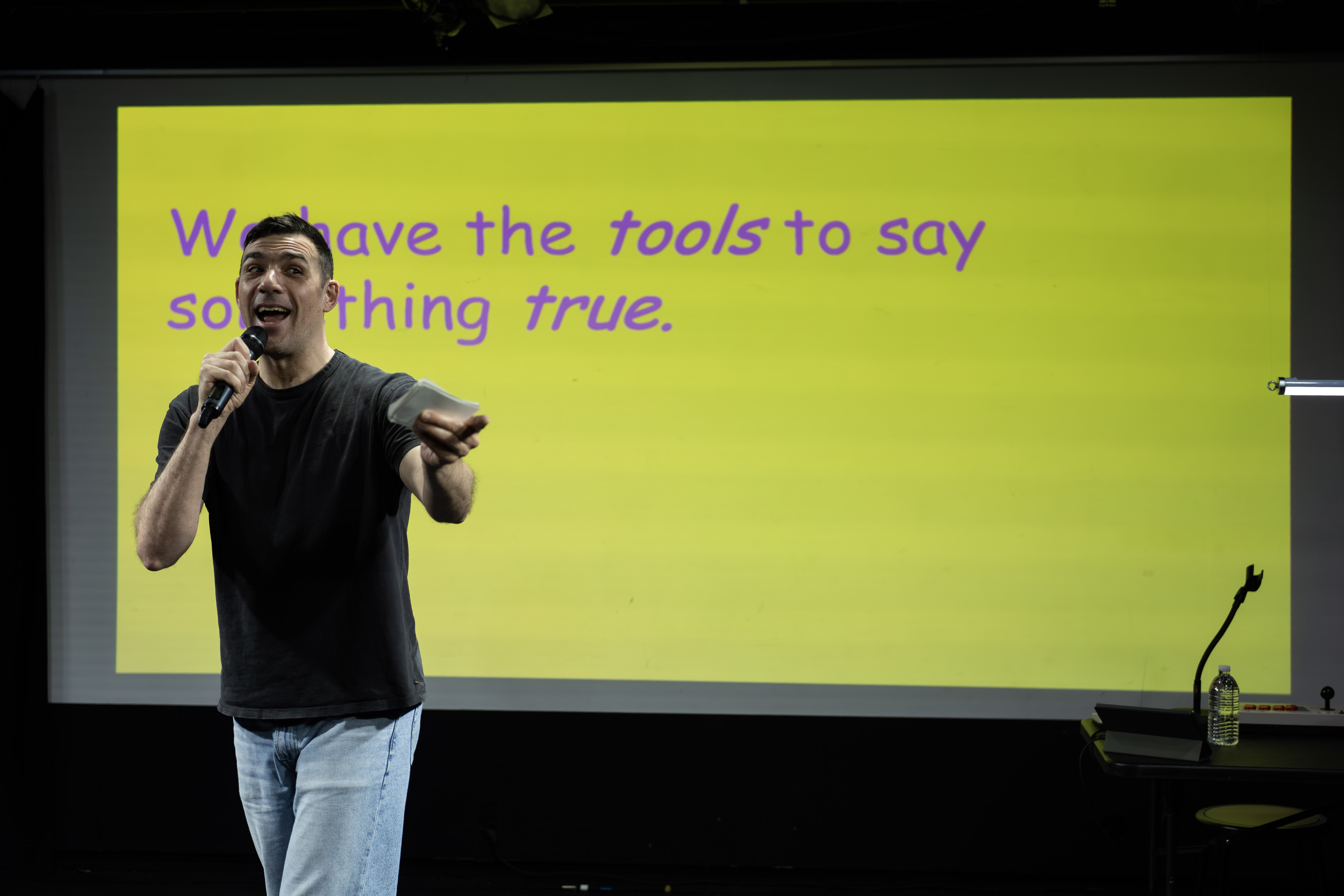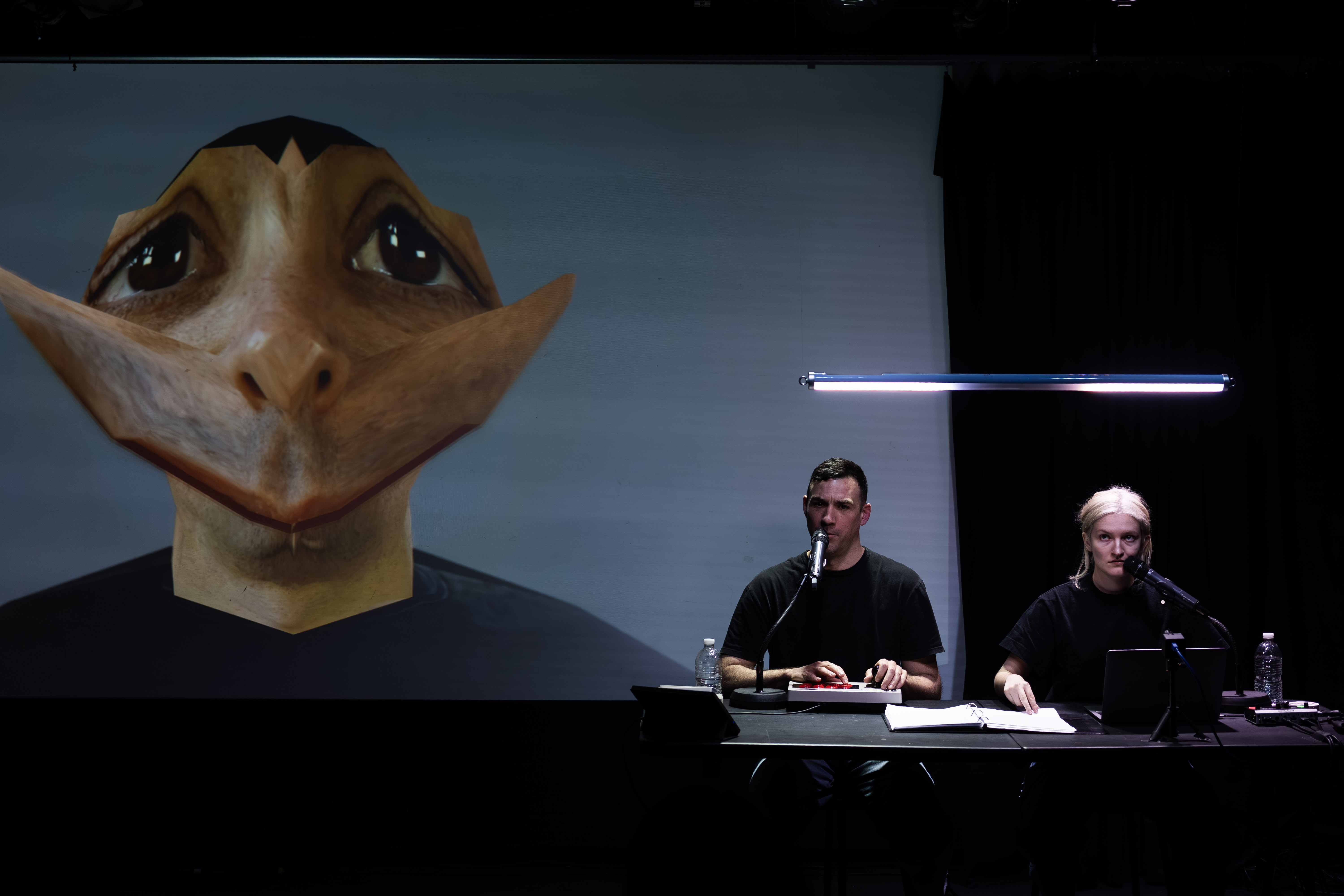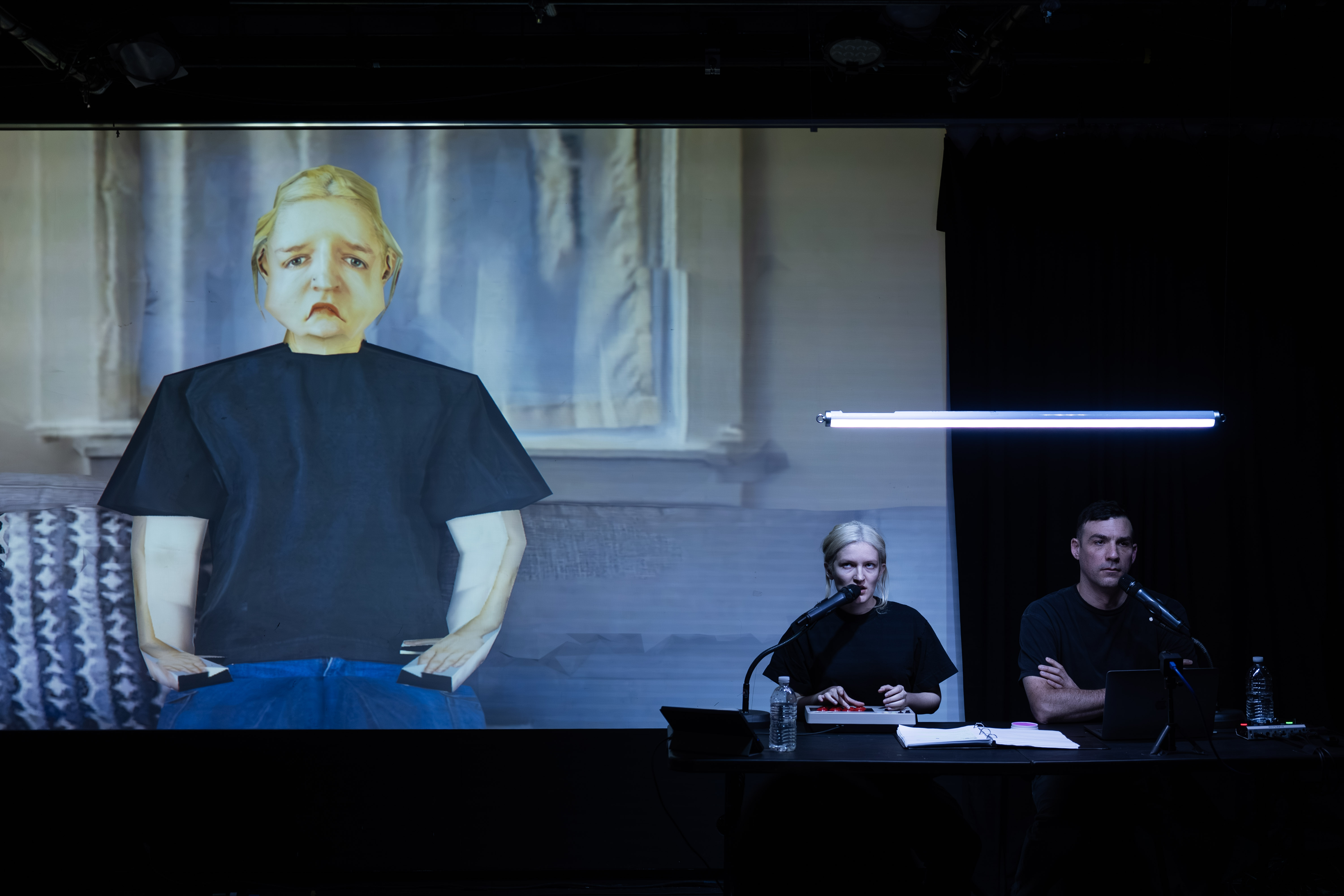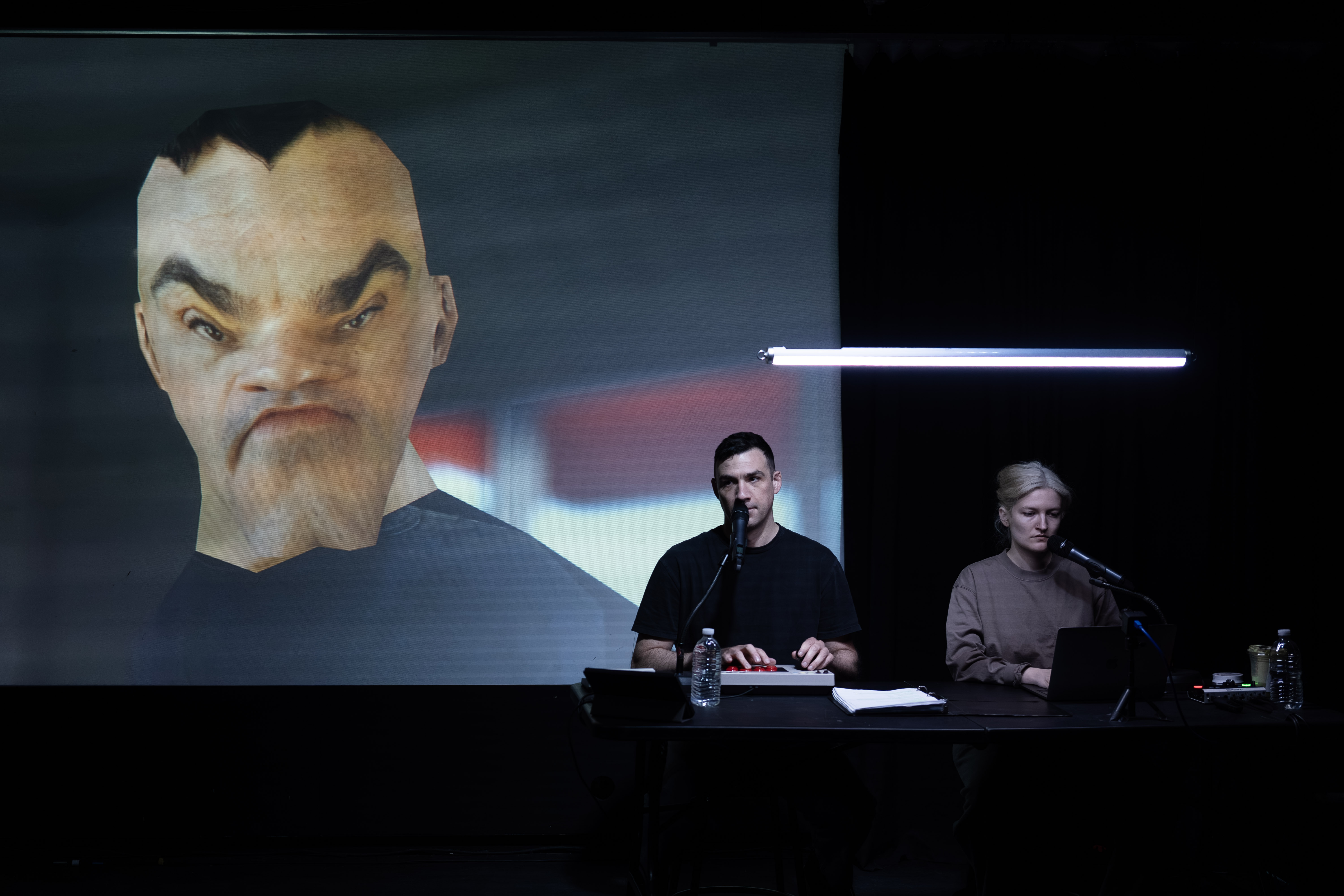 In this two-person performance, creators Walker Caplan and Matt Romein use and abuse the conventions of confessional monologue theater while using video game engines to puppet emotive 3D avatars, aided by PowerPoint presentations and live camera feeds. Fantasies are corrupted by hijacked imaginations, bodies are mediated through digital boundaries, and emotions are misinterpreted again and again and again. Still, no hard feelings.